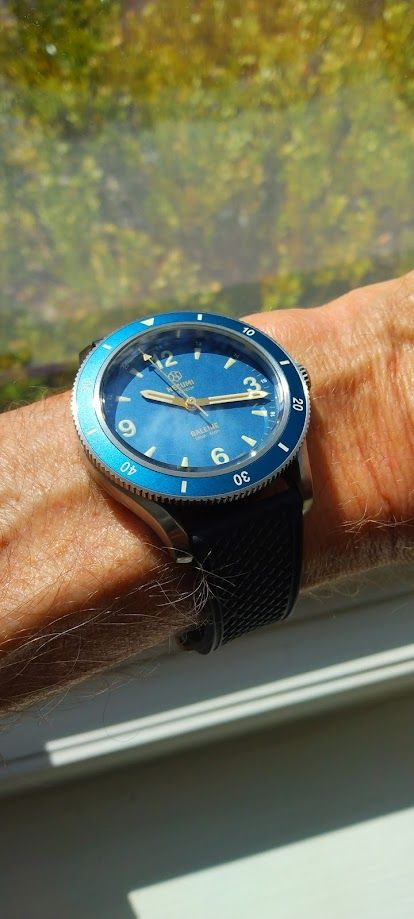 Sum: An overall excellent diver from an energetic company. Ticks most all the boxes in a positive manner. This watch is a ‘whale’ of a fun time and wears well with good looks.